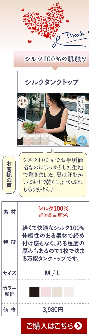 | 商品仕様 | 丸首タンクトップシャツ シルク肌着 |