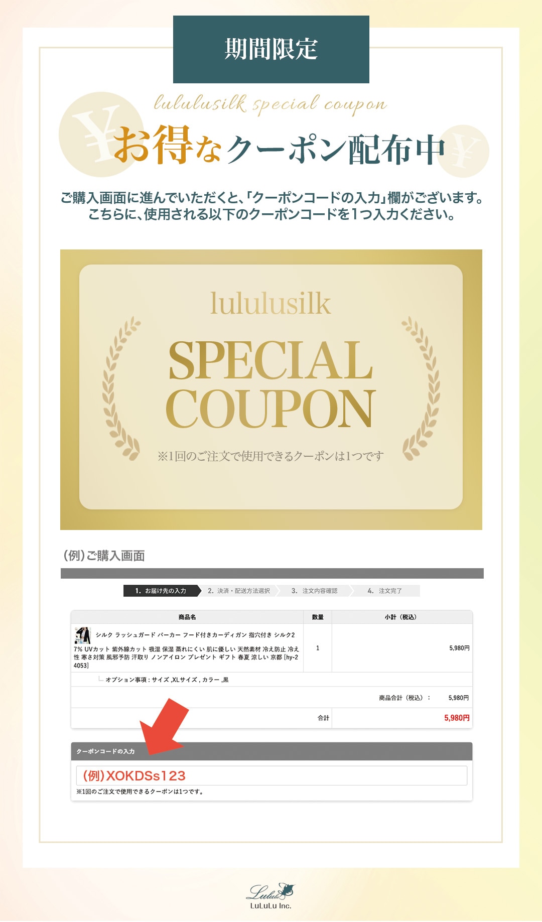 期間限定のお得なクーポン♪以下のコードを入力ください